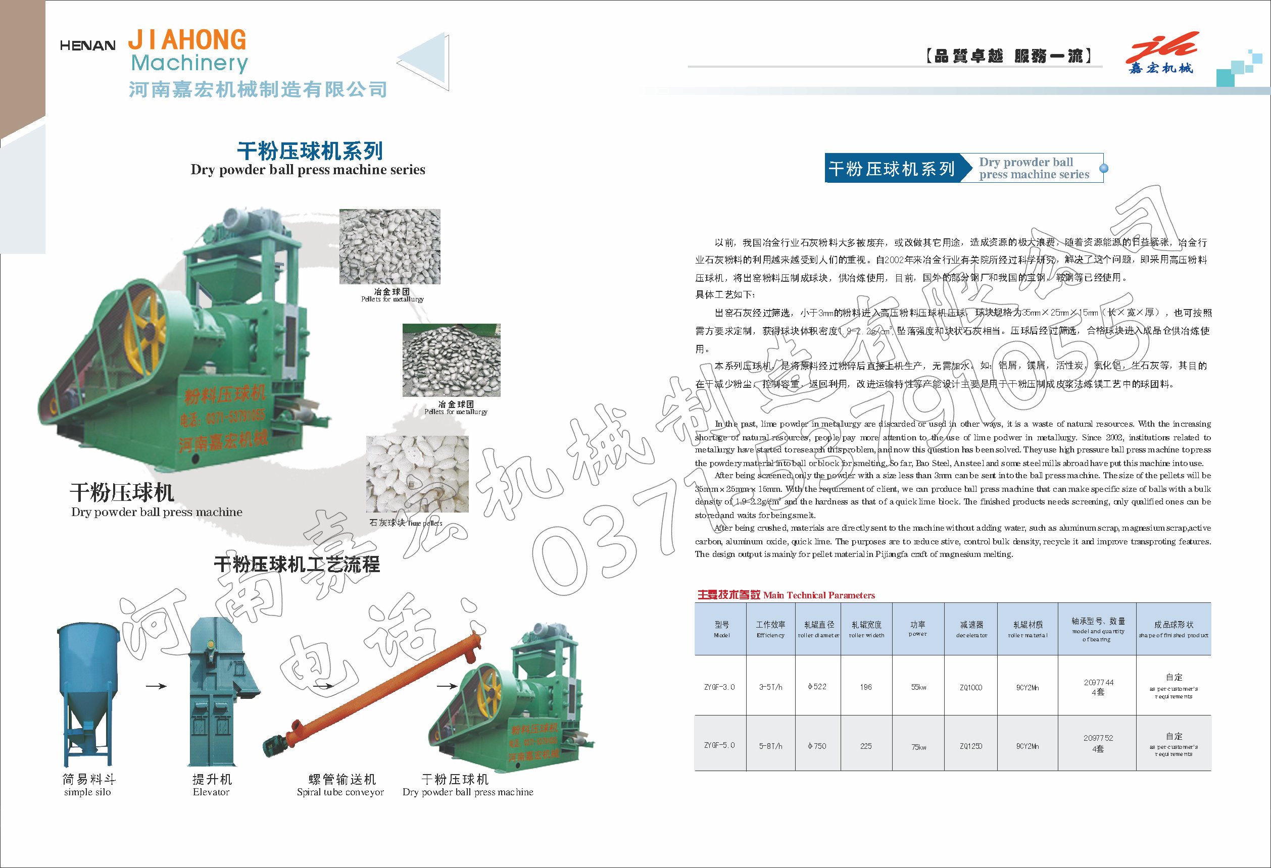 嘉宏機械是河南最大的壓球機生產基地,技術選進,服務一流,主要產品有:礦粉壓球機、干粉壓球機、脫硫石膏壓球機、石灰粉壓球機、型煤壓球機等。我們熱忱歡迎新老客戶前來公司洽談合作,選購產品。